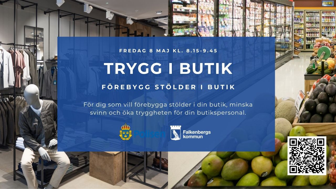 Vill du förebygga stölder i din butik, minska svinn och öka tryggheten för din butikspersonal? Välkommen till utbildning Trygg i butik – ett samarbete mellan polisen, kommunen och handeln för att förebygga butiksstölder och öka tryggheten på arbetsplatsen.