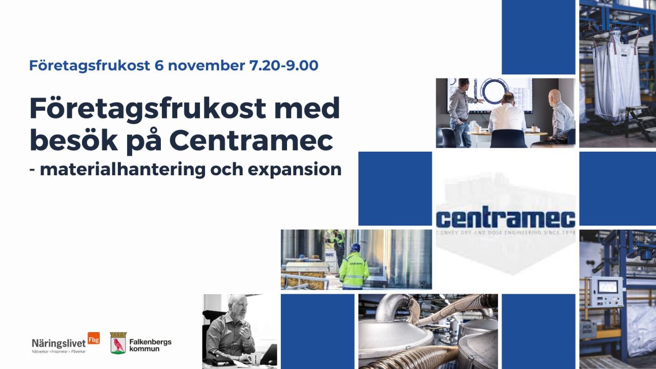 Välkommen till företagsfrukost på Centramec med fokus på materialhantering och expansion.