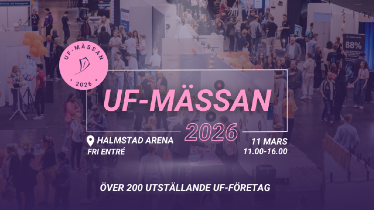 Den 11 mars är det äntligen dags för UF-mässan. Under dagen förvandlas Halmstad Arena till Hallands största mötesplats för ungt entreprenörskap! Här samlas beslutsfattare, näringsliv och såklart hundratals UF-företag med gymnasieelever från hela regionen för att visa upp sina affärsidéer och sälja sina produkter eller tjänster. Kom och upplev deras driv och ta pulsen på framtidens arbetstagare och entreprenörer!